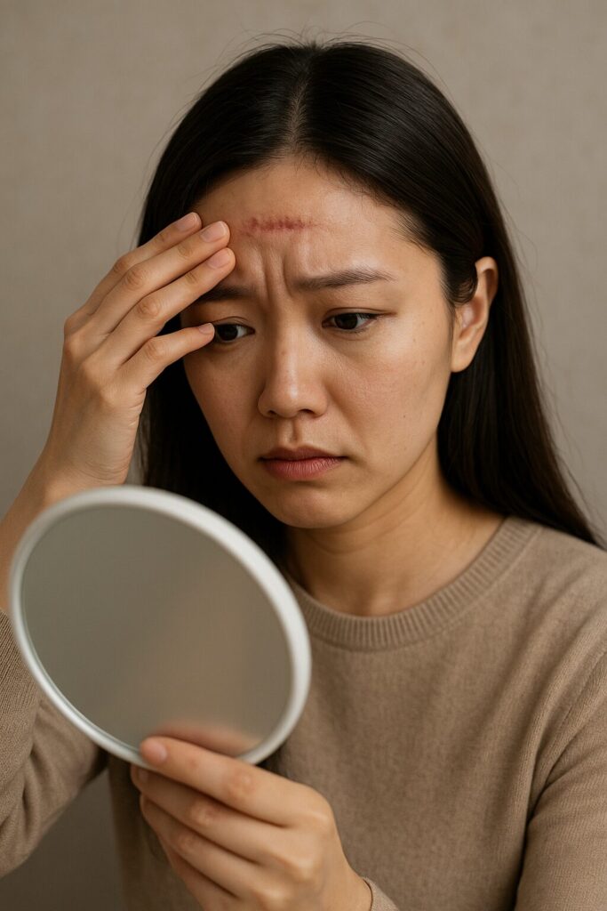 • 또한, 얼굴은 표정·감정 전달의 중심이므로 흉터가 표정 라인이나 움직임과 겹치면 피할 수 없는 “매일 마주하는 불편한 존재”가 될 수 있습니다.
