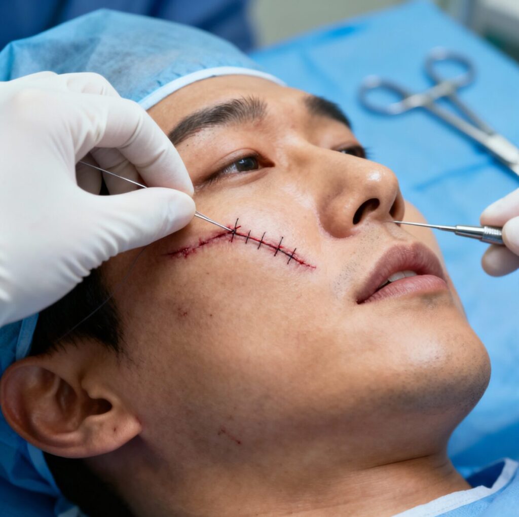 얼굴 상처가 생겼을 때 가장 먼저 해야 할 것은 전문적인 봉합 수술입니다. 여기서 제대로 봉합되지 않으면 흉터가 넓어지거나 비정상적으로 남을 위험이 크게 증가합니다.