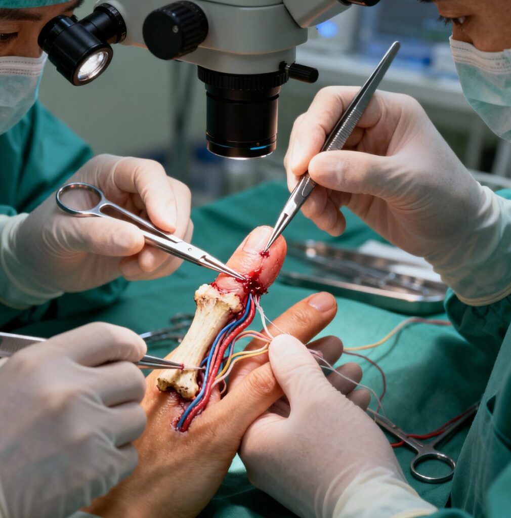 ‘수지접합(手指接合, replantation)’이란 말 그대로 절단된 손가락을 다시 이어 붙이는 수술이다. 이는 단순히 꿰매는 수준의 처치가 아니라 뼈, 혈관, 신경, 힘줄, 피부를 모두 복원하는 미세수술이다.